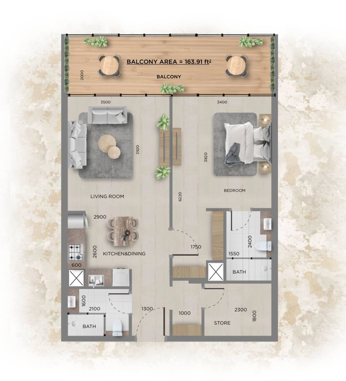 يُعرف قطاع الشقق المكونة من غرفة نوم واحدة بسيولته القوية. تتميز هذه الوحدة بحمامين وشرفة كبيرة، مما يجعلها تتفوق على العروض القياسية. وهي تضمن عوائد إيجارية ممتازة وزيادة أسرع في قيمة رأس المال، كما أنها تعتبر أصلًا مرنًا بفضل ميزاتها الفائقة.