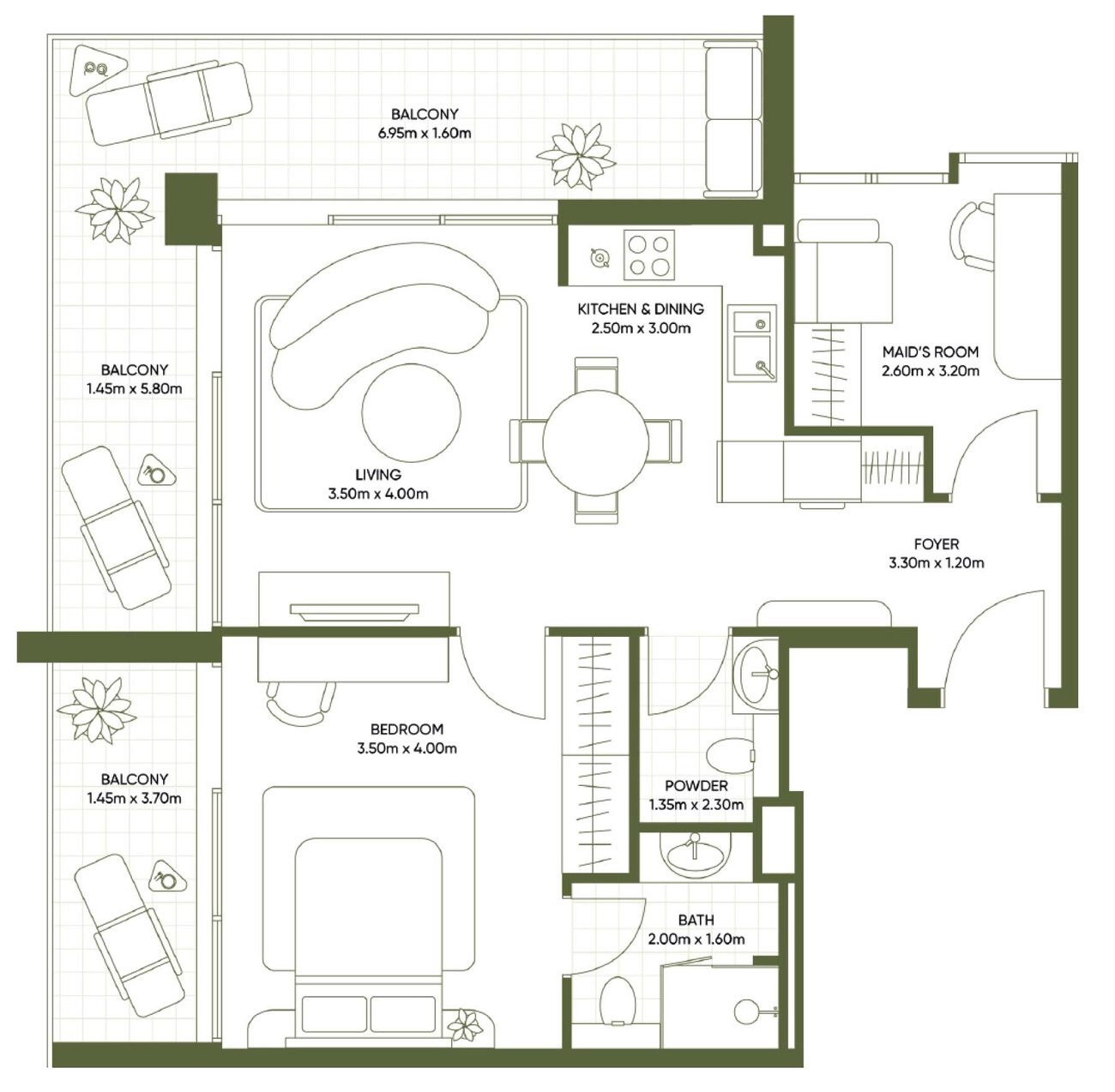 للمستثمرين: تُعد الوحدات التي تحتوي على غرفة خادمة/غرفة دراسة “وحيدة القرن” في سوق الإيجار، حيث تحصل على أقساط أعلى بكثير من الوحدات ذات السرير الواحد العادية. تضيف الشرفة الضخمة “عامل الرفاهية” الذي يعزز من قيمة رأس المال وعائد الإيجار (العائد على الاستثمار).
