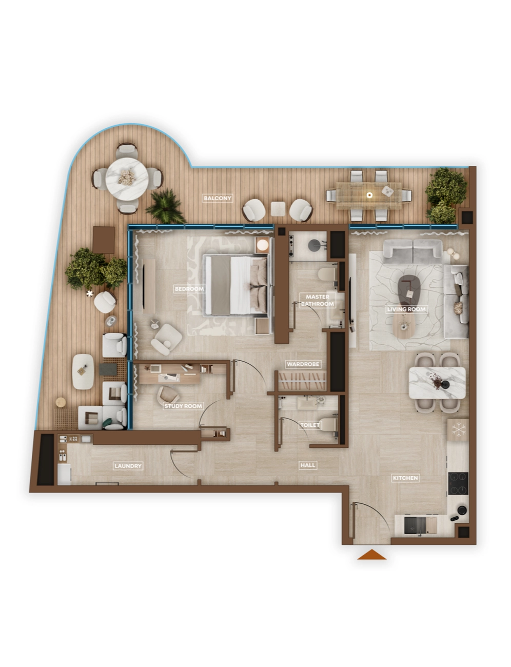 Gesamtfläche: Wohnfläche + großzügiger umlaufender Balkon (genaue Größe kann hinzugefügt werden)
