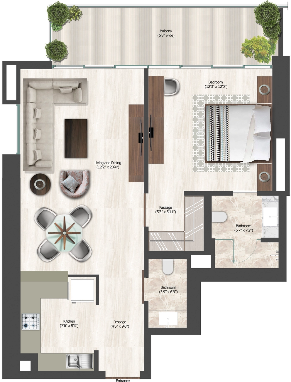 Das Segment der 1-Zimmer-Wohnungen ist für seine starke Nachfrage bekannt. Diese Einheit mit ihrem übergroßen Wohnbereich und zwei Badezimmern bietet erstklassige Ausstattungsmerkmale, die überdurchschnittliche Mietrenditen und Wertsteigerungen versprechen. Es handelt sich um eine kluge Investition, die gute Erreichbarkeit mit Premium-Ausstattung kombiniert.