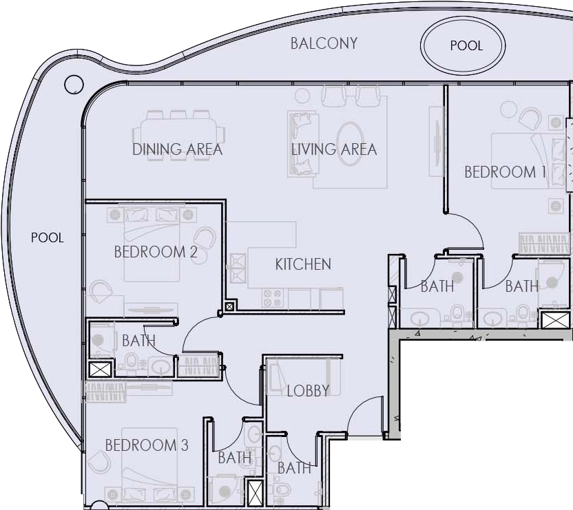 Luxus für Familien und Entertainer: Diese Wohnung ist der ultimative Rückzugsort für Familien. Drei Schlafzimmer bieten reichlich Platz, und der direkte Blick auf den Pool sowie der direkte Zugang zum Pool bieten Kindern und Erwachsenen gleichermaßen einen unglaublichen Lebensstil. Die Privatsphäre der Schlafzimmer und die Offenheit des Wohnbereichs machen diese Wohnung perfekt für Familienzeit und anspruchsvolle Unterhaltung in einer sicheren, erstklassigen Anlage.