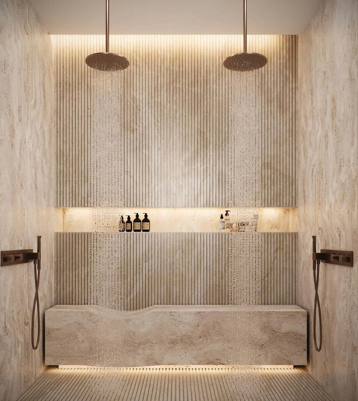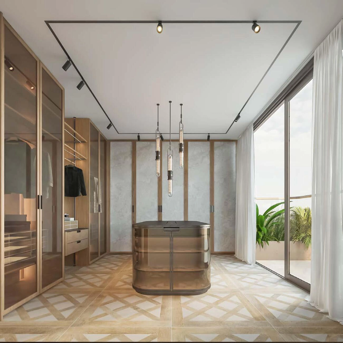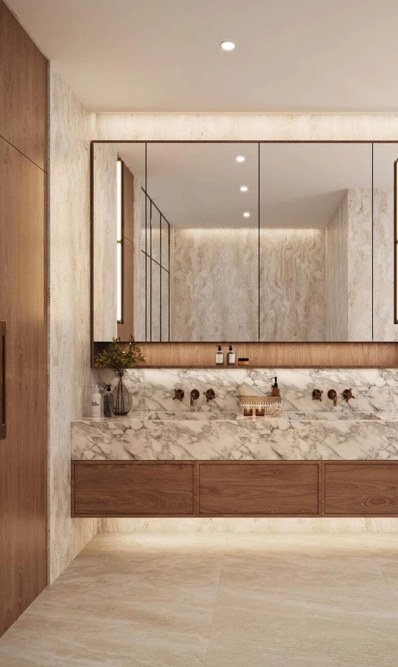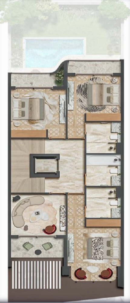 Zweiter Stock (Dachterrasse): Das Kronjuwel ist die Master-Suite oder das Gäste-Penthouse mit einem riesigen begehbaren Kleiderschrank, einem Spa-ähnlichen Badezimmer und Zugang zu einer spektakulären Dachterrasse mit Essbereich und Außenküche – ideal für Zusammenkünfte bei Sonnenuntergang.