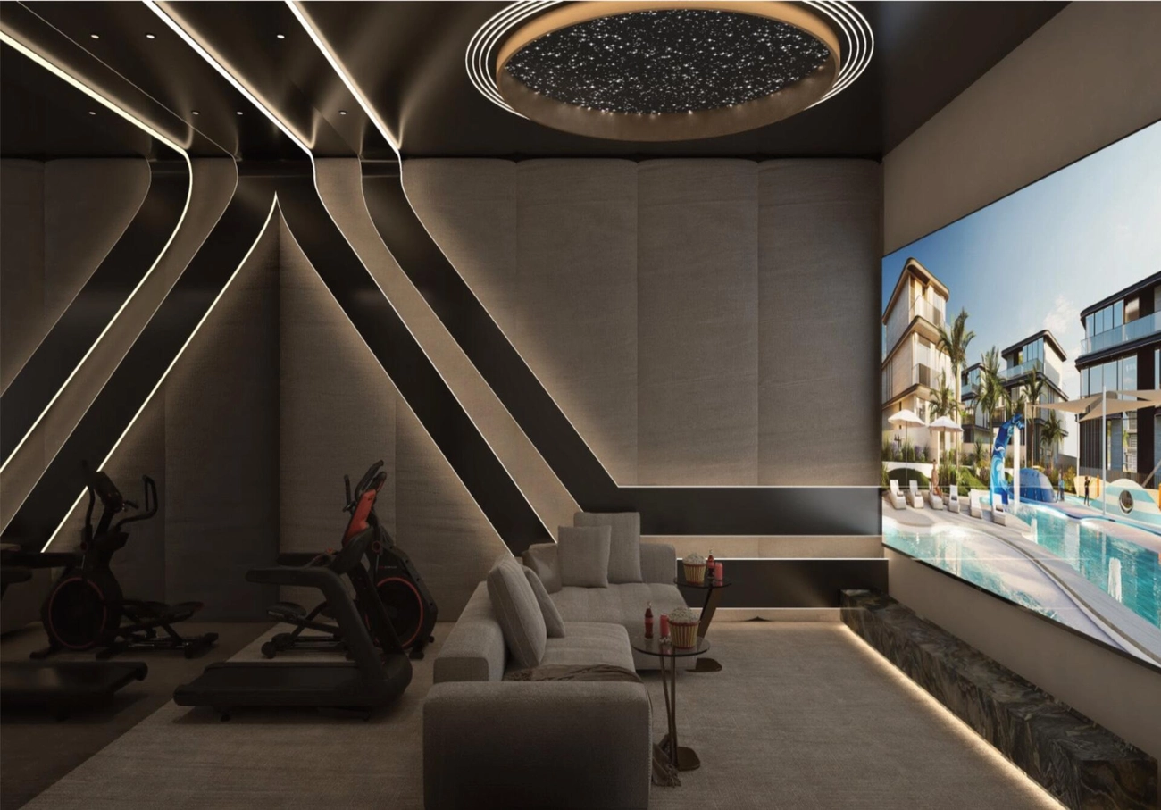 Dritter Stock (das Unterhaltungszentrum): Ein vielseitiger, erstklassiger Raum für Veranstaltungen mit einer großen Lounge oder einem Kinoraum, der sich zu einer riesigen Panorama-Dachterrasse hin öffnet, ideal für ein Abendessen unter freiem Himmel unter dem Sternenhimmel.