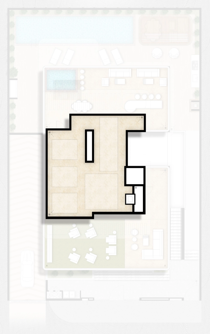 Der Grundriss der Villa ist sorgfältig strukturiert, um unterschiedliche Bereiche für das gesellschaftliche Leben, die persönliche Erholung und die Freizeit zu schaffen: