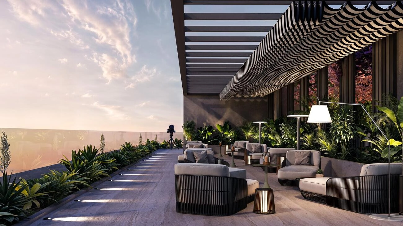 Interstellar Tower ist ein wegweisendes Wohnprojekt im Jumeirah Village Triangle (JVT), das als Dubais nachhaltigste Entwicklung gilt. Es wurde mit einem Schwerpunkt auf Umweltverantwortung und dem Wohlbefinden der Bewohner entworfen und bietet eine beispiellose Auswahl an großzügigen Annehmlichkeiten. Dazu gehören ein einzigartiger Dachgarten mit Spazierwegen, eine Sternwarte, ein Freiluftkino und private Whirlpools in jeder Wohnung, die neue Maßstäbe für luxuriöses urbanes Wohnen setzen.