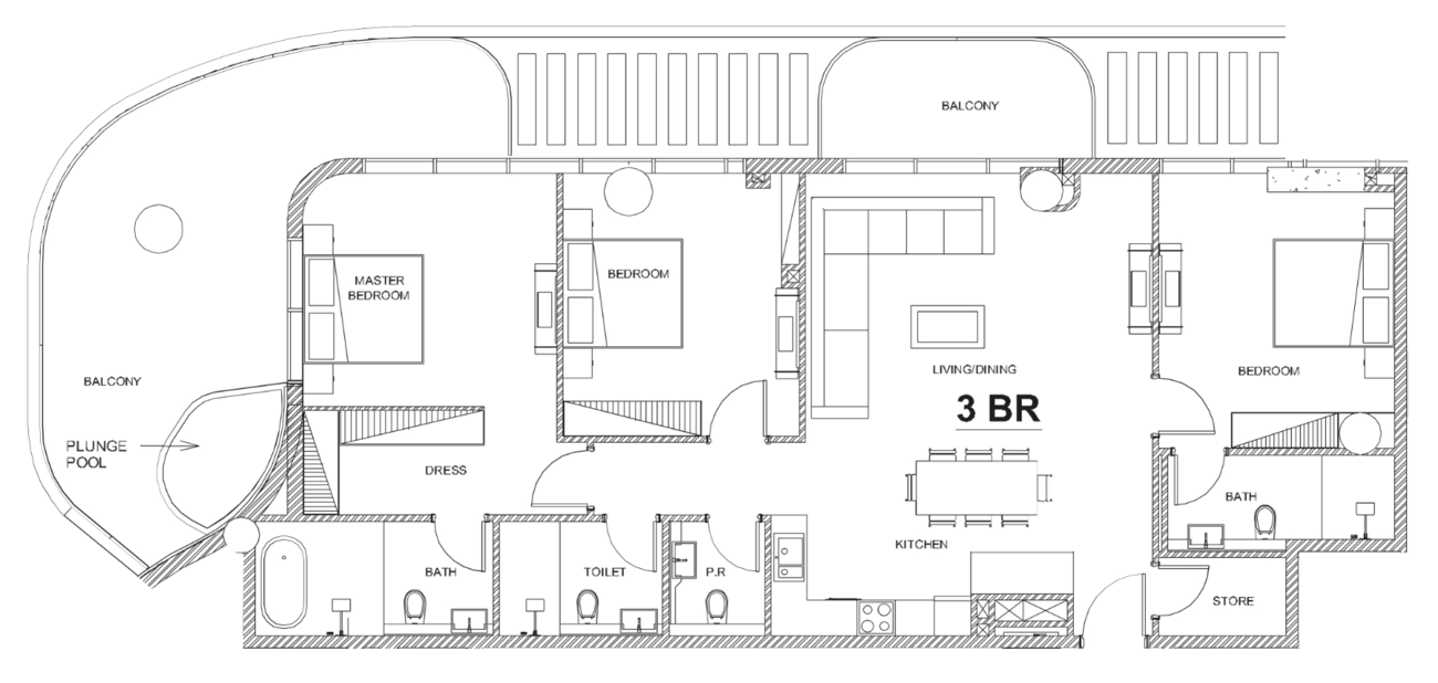 ✨ Ventajas: excelente separación de áreas privadas y sociales, amplia zona de estar, abundante luz natural, y una rara combinación de balcón + piscina privada.