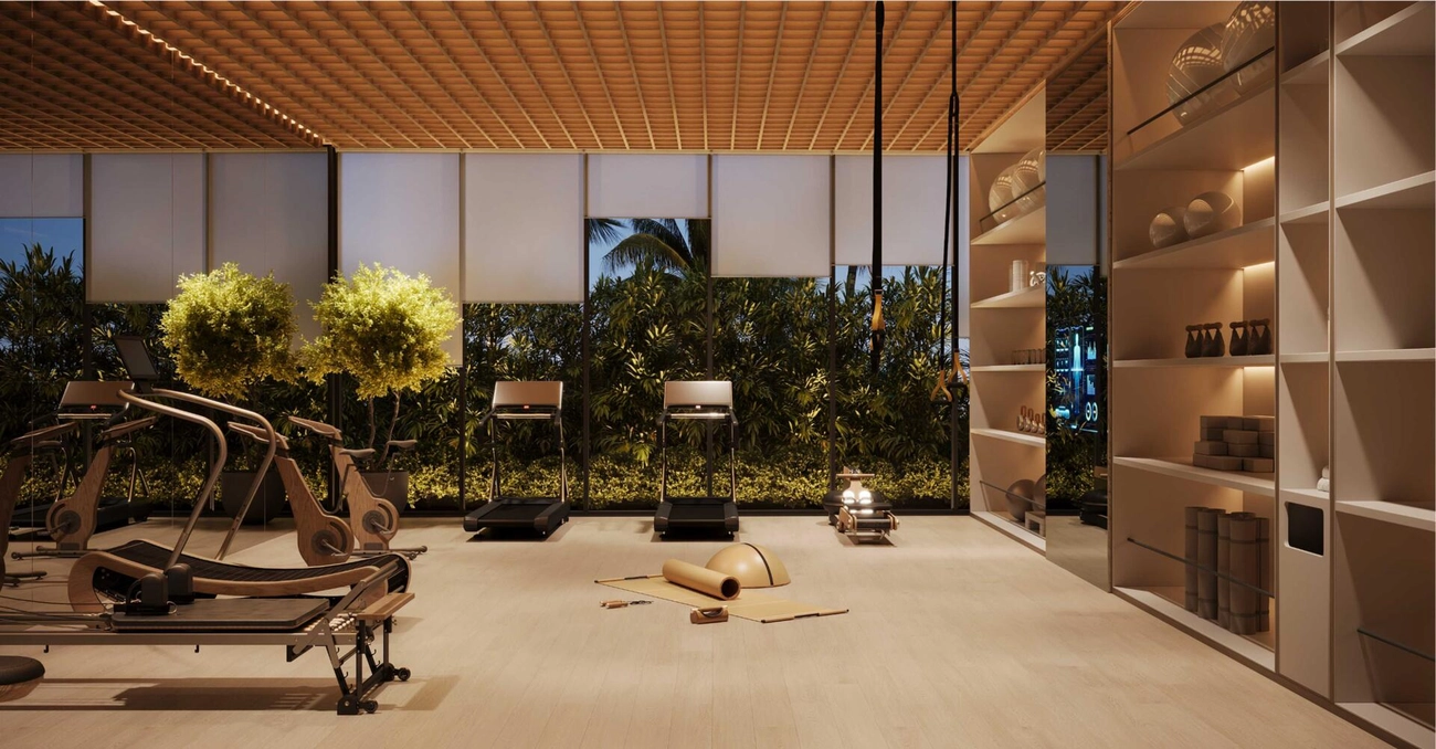 La residencia es una obra maestra en la que convergen la arquitectura y el arte, inspirada en la vívida estética de David Hockney. Esta visión artística queda plasmada en “El Oso Rojo”, una juguetona escultura en la azotea que simboliza el compromiso con la elegancia contemporánea. Esta filosofía se extiende a la propia azotea, un santuario cinematográfico con piscina infinita, cine al aire libre y una acogedora zona de barbacoa, que ofrece a los residentes una experiencia inigualable de lujo consciente por encima de la ciudad.