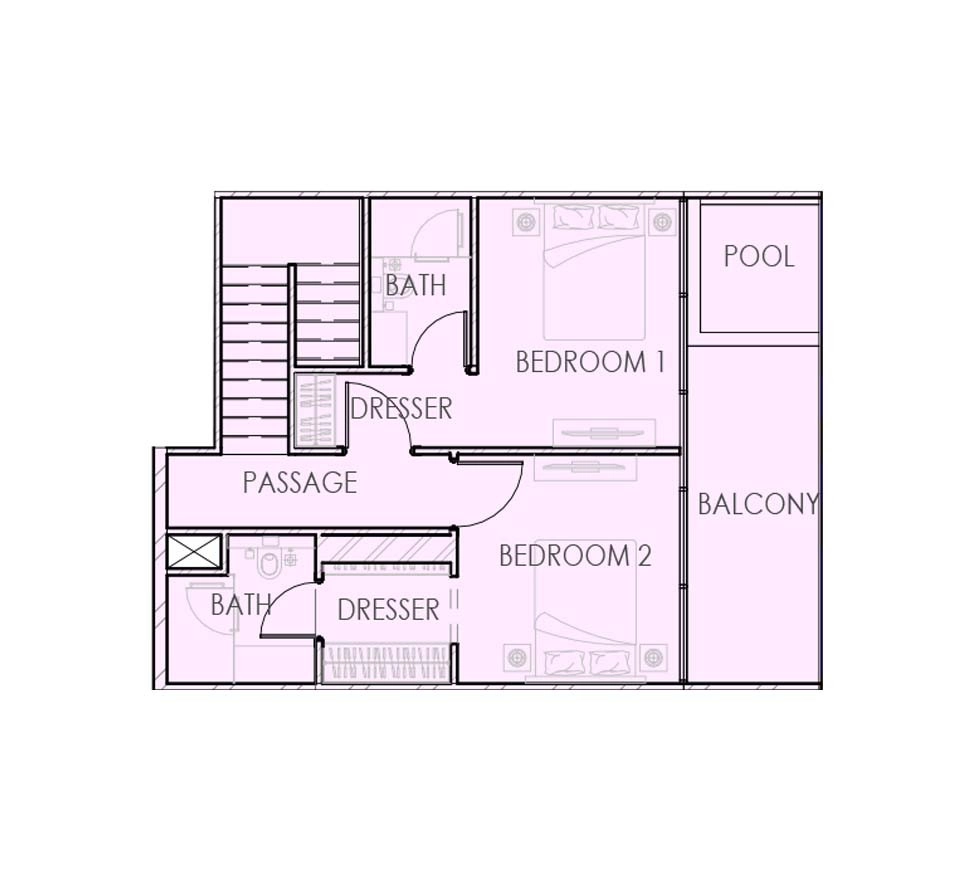 Premium Spaces: A private balcony accessible from the bedroom level serves as a perfect vantage point to enjoy the stunning pool and water vistas. Each bedroom benefits from a dedicated dressing area, offering luxury and convenience.