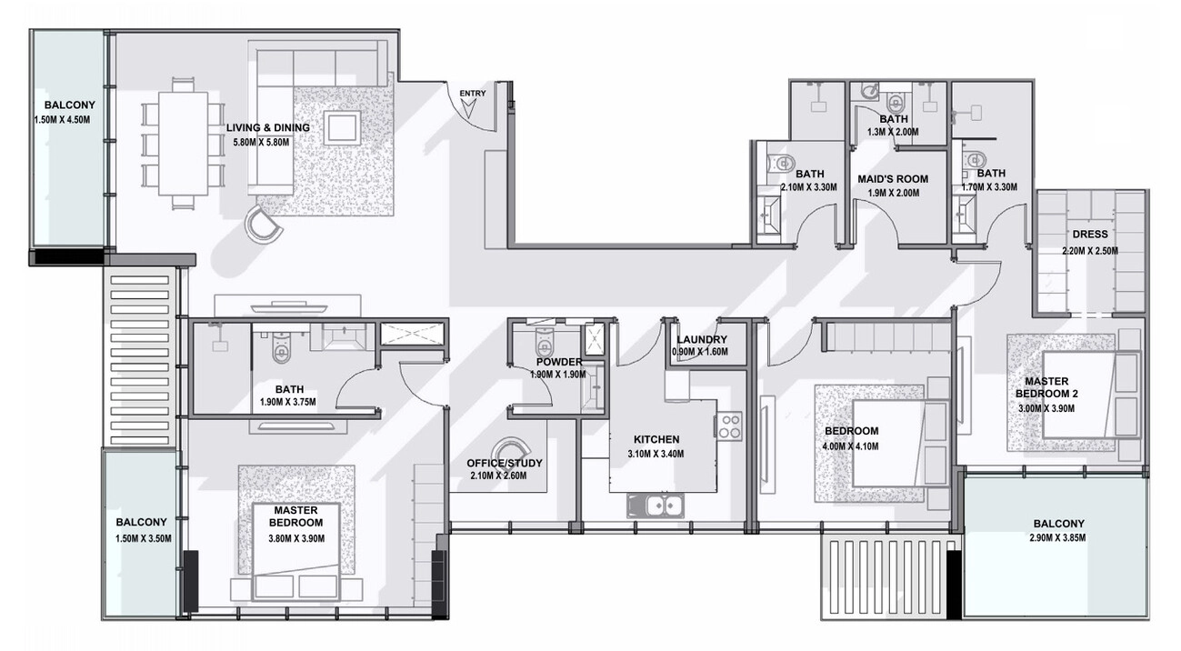 Productivity & Service: Includes a private 2.10m x 2.60m Office/Study, a dedicated Maid’s Room (1.9m x 2.00m) with its own bathroom, and a separate laundry room.