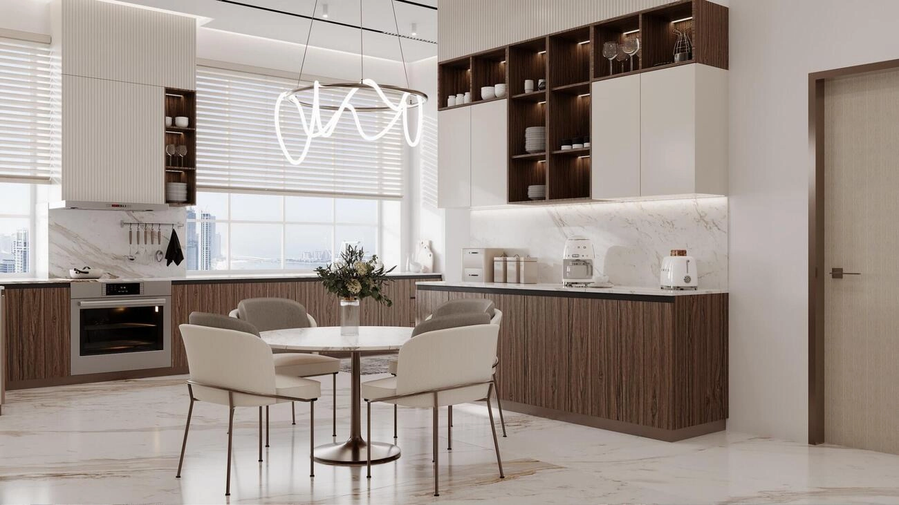 Kitchen: A modern, semi-open kitchen equipped with built-in appliances and ample workspace.