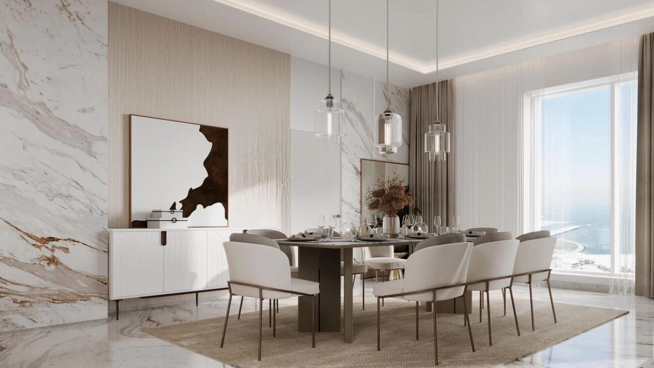 Presenting an exclusive 4-bedroom duplex apartment located in the prestigious Aeternitas complex. This offer perfectly combines the spaciousness of a suburban home with the premium comfort of a luxury skyscraper. The interior features high-quality marble flooring throughout, emphasizing the high status of the residence.
