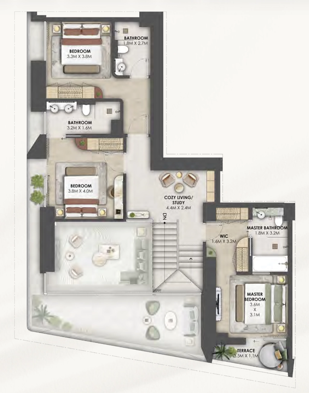 • Grand Terrace: Extend your living space outdoors with a massive terrace (8.5M x 2.4M) — perfect for alfresco dining and sunset views.